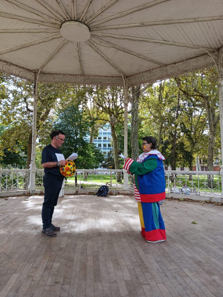 Saynète personnalisée avec spectacle de clown intégré.